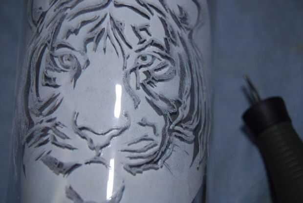 Usando una esfera relativamente pequeña (alrededor de 2-2.5 mm), delinear todas las áreas a ser grabado. Si la bola es demasiado grande para detalles (como el pelo y los dedos) no preocupación por ello. Si las líneas no siempre satisfacen para arriba, no te preocupes acerca de él. Si las líneas no siempre son lisas, adivinen qué... no se preocupe por él.