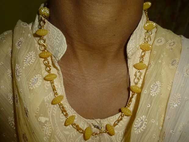 este proyecto simple es sobre Cómo hacer patrones de collar con los granos. Usted apenas necesita un alambre de cobre amarillo y perlas, un collar único se creará por usted.Paso 1: hacer un círculo 1. elegir un envase redondo, una tapa de la botella