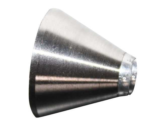 Tengo 4 iguales, pero como se ha mencionado el agujero era en grande, así que tuve que poner en una manga de aluminio dentro. El tubo de aluminio fue chaflanado a aproximadamente el ángulo de la taza de acero. Esto se hace simplemente limar y lijar hacia abajo.
