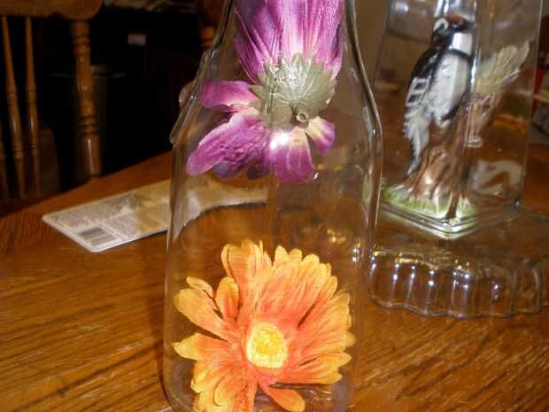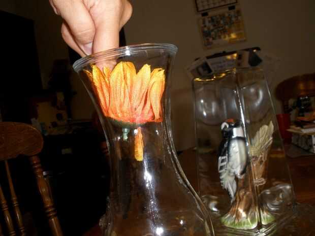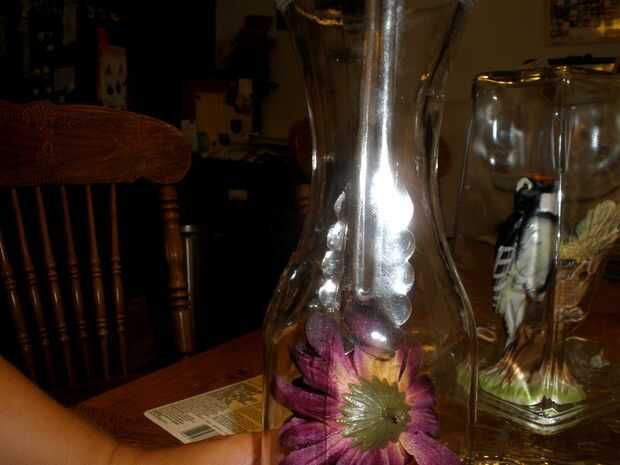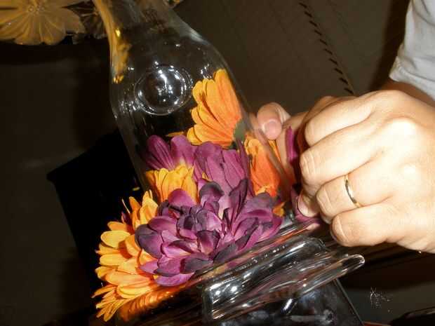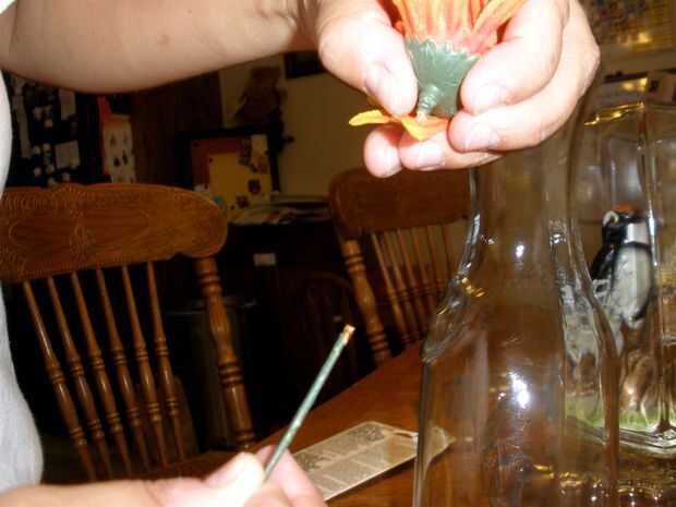 Una nota final – que terminé tener que pegar las flores con el E-6000, porque después de una semana fuera, las flores artificiales comenzaron saliendo del vidrio con el pegamento de pistola de pegamento original.