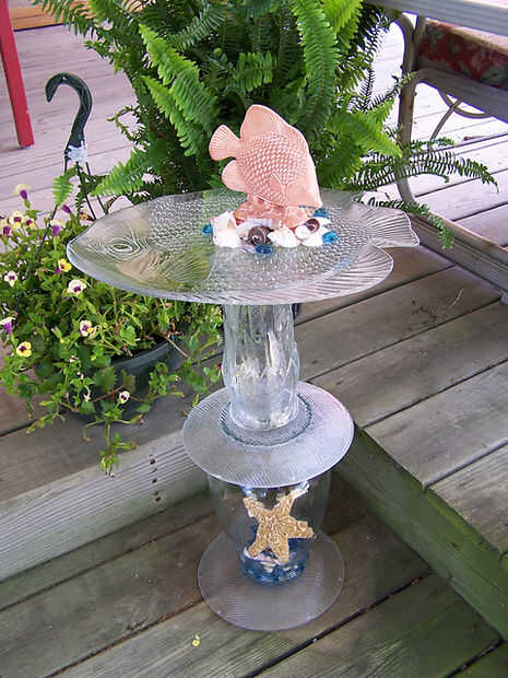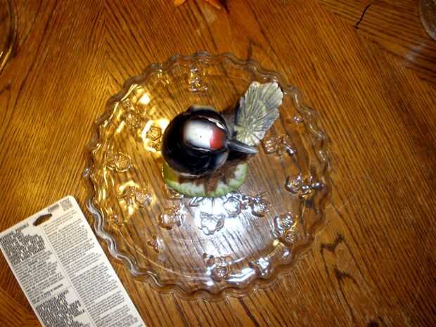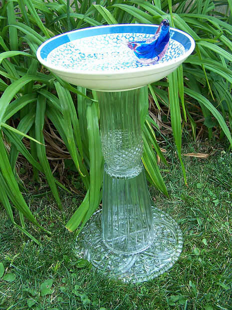 Dos de las piezas que se muestra en la pieza acabada del arte de baño de aves que he comprado en el mercadillo.