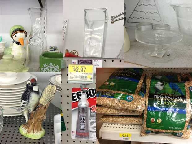 Saliendo a mi fondo de comercio local (tienda de segunda mano caritativa), estaba buscando para gastar menos de $20 para todo el proyecto y decidió tomar algunas fotos de los elementos utilizados en el estante en el almacén.