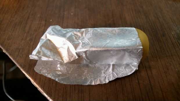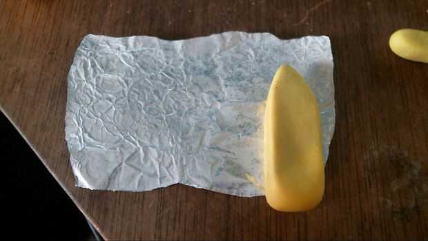 Ahora Envuelva la plantilla en papel de aluminio y asegúrese de obtener todos los rincones. Una vez que se ajusta perfectamente alrededor de la plantilla suavemente saque la plantilla del molde.