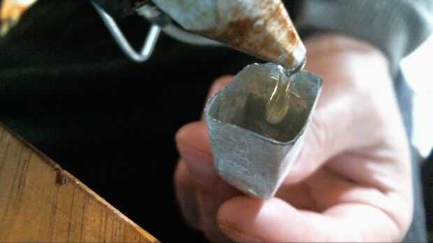 Bien este paso necesita un poco de una etiqueta de ADVERTENCIA: PRECAUCIÓN, caliente. Puede usar guantes o encontrar un buen lugar para colocar el molde. Una vez que esté seguro de que no quemarse, utilizar su gluegun y llenar el molde.