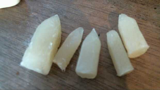 Ahora que tus cristales se realizan puede utilizar pegándolas en una base o pegarlos en un apoyo, estoy usando el mío para hacer brillantes cristales creciendo fuera de una plantilla para mi traje de novias (si nos atenemos a un LED debajo de ellos brillan un amarillo opaco y blanco).
