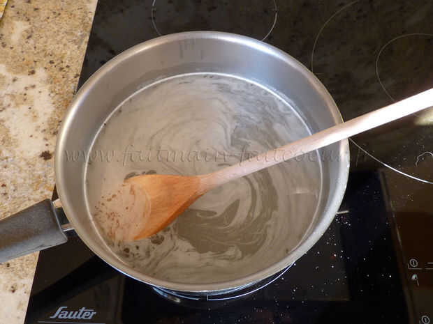 Calentar el agua y agregue el azúcar en varias veces.