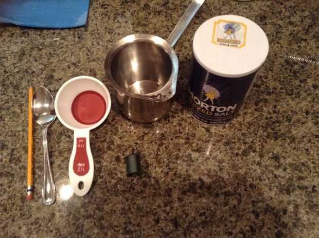 Todo lo que necesita es algun tipo de sal 1/2 taza, cuchara, 1/2 de agua y un lápiz y una cadena