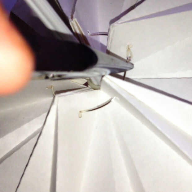 Conectar las primeras cinco piezas usando un trozo de alambre y un alicate. Enrosque el alambre por los agujeros en el papel.