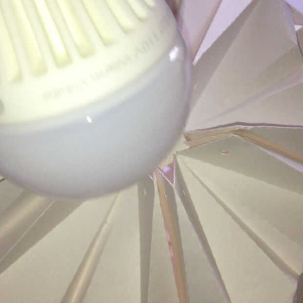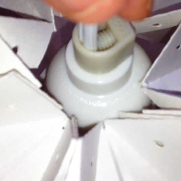 Inserte la bombilla de luz LED y el encaje en la abertura y conecte la abertura con el alambre pasado.