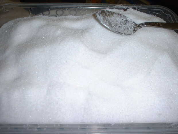 Después de ~ 30 min los pedazos fueron recogidos-hacia fuera y el exceso de azúcar volvieron a la bolsa para uso futuro (poco)