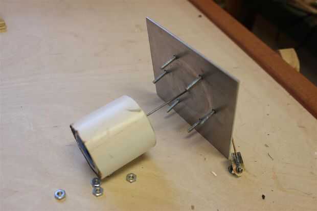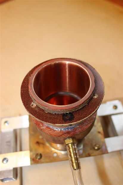 Aislador separador: madera dura, ID = 2.125", perforado con 2 1/8" Sierra, luego epoxy usado para pegar el tubo de cobre de secciones en madera espaciador.