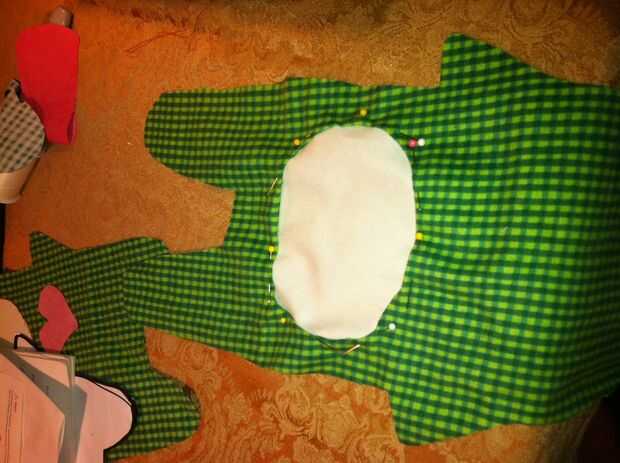 quería que la cara de mi conejito que recuadro, en lugar de estar en la parte superior del cuerpo de la tela. Si usted prefiere su juguete de esta manera, tomar el patrón de papel que creó para la cara y colocarla sobre un pedazo de cuerpo de tela. Traza el patrón, luego cortar el óvalo. A continuación, tome un cuadrado de tela más grande que el agujero, cortar y colocar en el agujero. Los bordes de la tela principal debajo del perno, luego coser las dos piezas juntas.