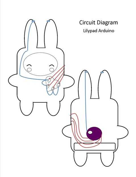 Después de sus connectionss positivo han sido cosidas, es hora de coser el hilo de tierra. Conecte de forma segura un extremo de su hilo para el conector de tierra (-) en su Lilypad, bucle el hilo varias veces para asegurar una buena conexión. A continuación, coser todo el camino hasta la punta de una oreja y fije una pieza de su complemento a la cima con su hilo conductor. Bucle del hilo firmemente, luego ate la lo. En la oreja siguiente, conecte el otro lado de la presión. Luego coser una línea de hilo que conecta el lado (-) de cada una de las luces LED. Después de colocar el hilo de tierra hasta el final del último LED, termines costura. Toque los broches juntos y ver que las luces se encienden.