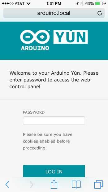 - Prueba al intentar acceder a http://arduino.local. Debería ver una pantalla similar a la que se muestra (en mi dispositivo móvil, pero podría fácilmente desde una PC).