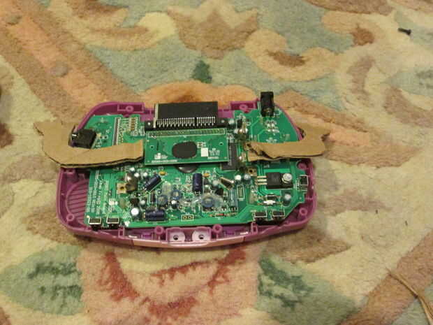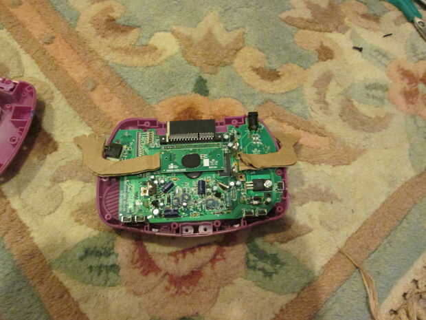 Con los brazos semi está bien cortadas, colocó en la parte posterior de la placa, del lado que sería cubierto por la parte posterior de la Leapster.