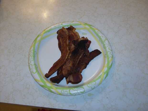 La ventaja de tocino en el horno de la hornada: todas las gotas de grasa de la panceta y sobre el pan, por lo tanto reduciendo la grasitud, calorías, grasa y tendrán tocino crujiente. Cuando se hornea el tocino, el tocino uniformemente cocina le perm