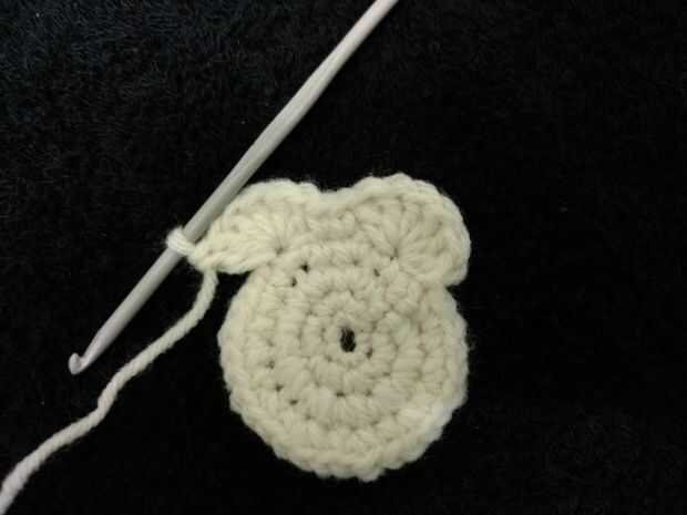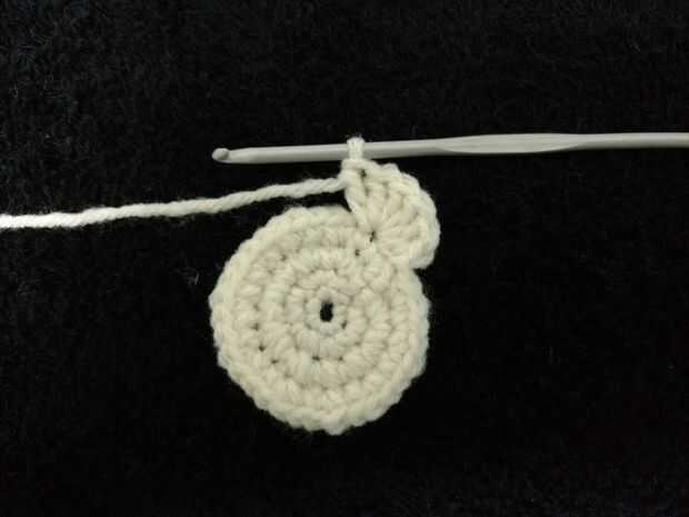 Redondo 5: Saltar una puntada y hacer 6 DC en la puntada siguiente, saltar una puntada, hacer una SC en dos, saltar un punto, 6 C.C. todo en uno. Ahora saltar un punto y unir con un sl st.