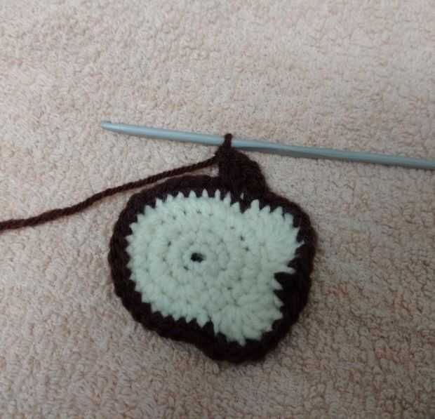 Sujete el hilo a un lado de la cabeza, 1 de la cadena y saltar una puntada, hacer 6 DC en la puntada siguiente, unir con una puntada de resbalón en el siguiente. Fije apagado.