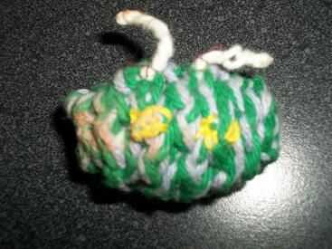 esta es mi versión de un modelo de libro de Christen Haden, Creepy Cute Crochet. Fue desarrollado a mano alzada y fue mi primer proyecto crocheting.Parte de mi "colección de Creepy Cute Crochet". Crédito de Christen Haden.