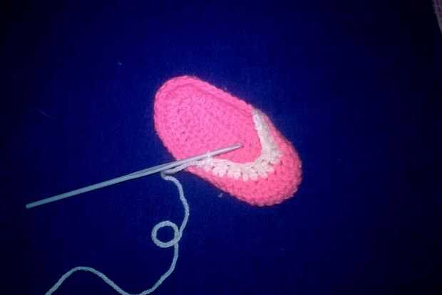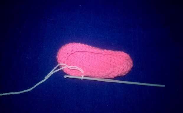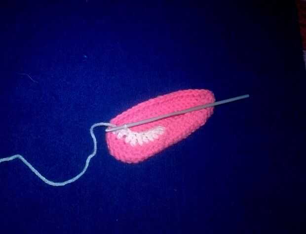 Media caña 6: localizar en la parte delantera de la bota la puntada central (es la 3ª dc2tog), contar 8 puntadas a la derecha, sujete el hilo en 8 st; CH 2, dc en próximo st, {dc2tog sobre próximos 2 st} 8 veces. A su vez.
