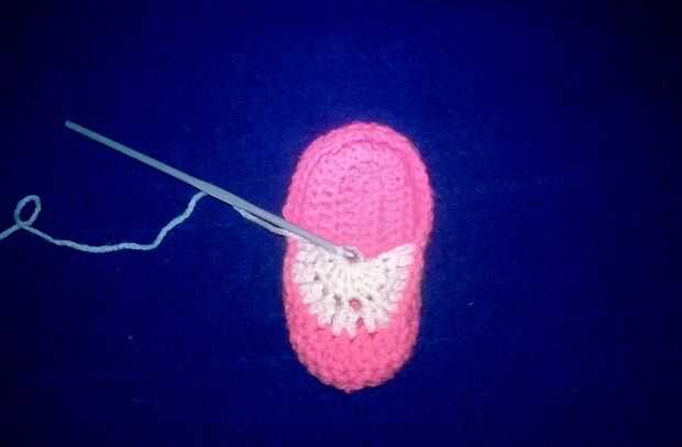 Crochet bebé Shell encaje botín (8 / 9 paso)