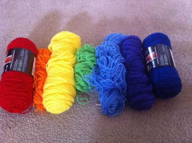 mano de ganchillo esta venda arco iris cool con hilo de algodón en todos los colores del arco iris.El truco para esta diadema de estilo es dejar muy largas colas en ambos extremos de cada fila, que se utilizará para el empate cuando se termine la ban