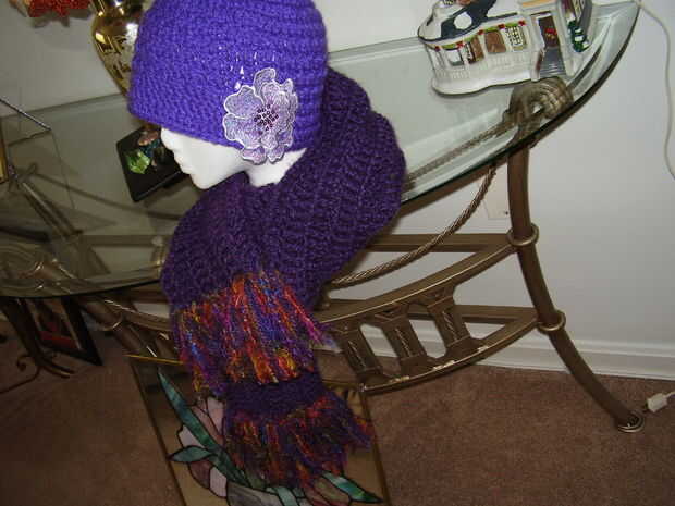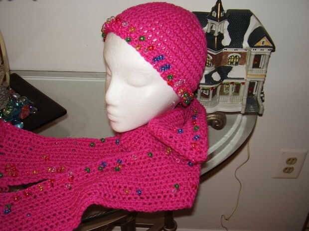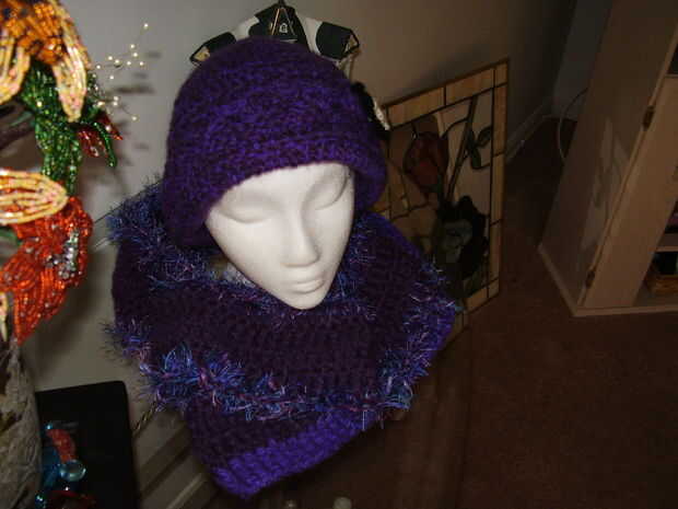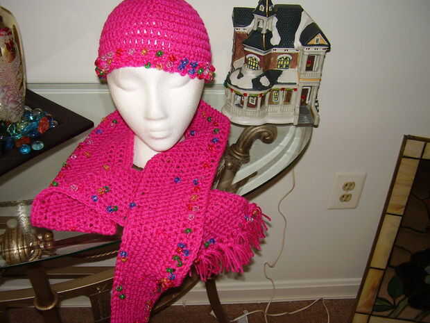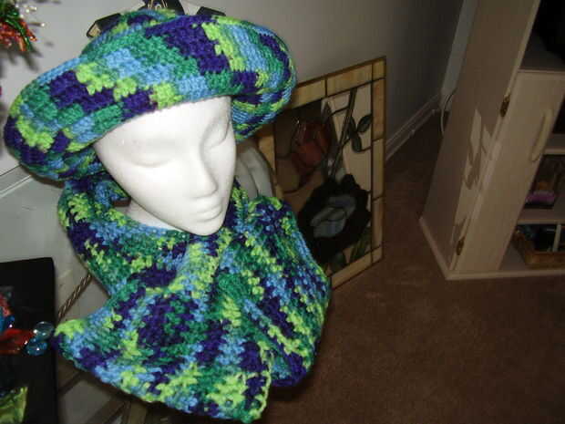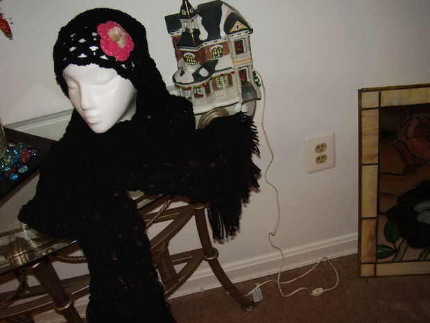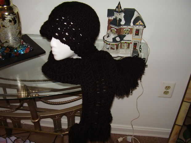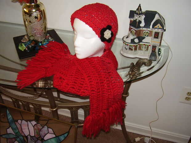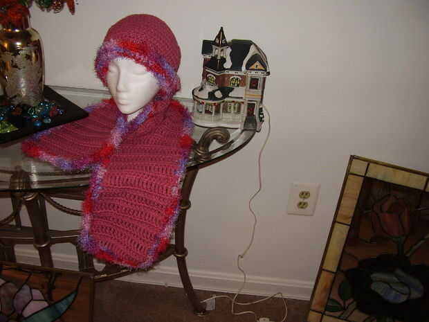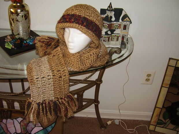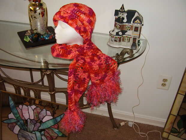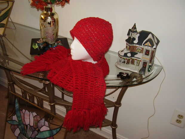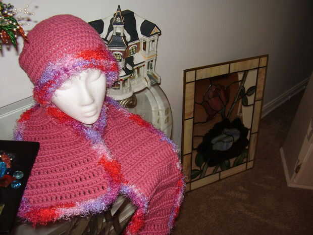 Yo era nueva en ganchillo así que compré hilo como lo vi. Tenía un montón de LionBrand Jiffy y caseras, peso peinada de corazón rojo, y algunos Bernat hilos para completar este proyecto. Los sombreros eran rápidos. Hice la mayor parte de los pañuelos en una puntada de crochet doble que es rápido para mí.