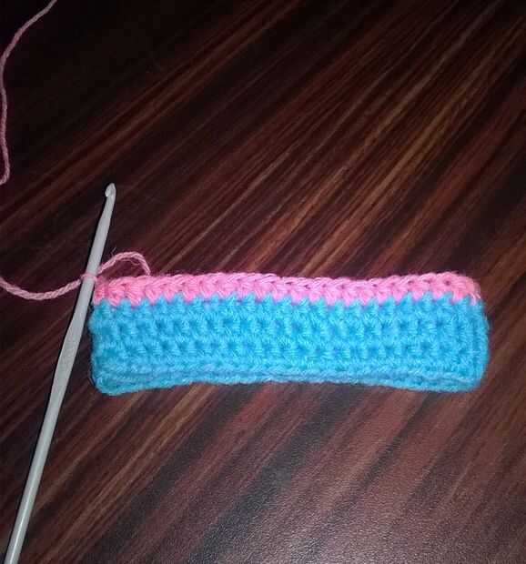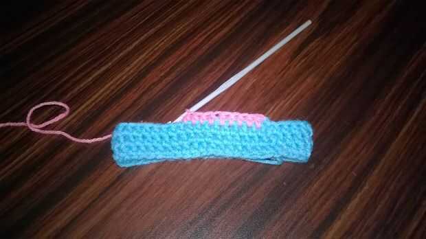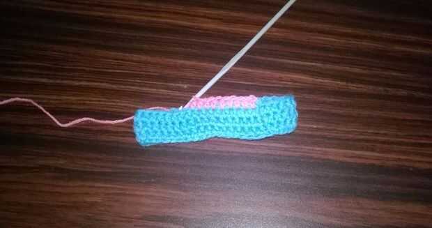 Fila 5: Cambiar a color rosa hilo, Ch 1, girar sobre, hdc alrededor. Únete con un sl St. (32)