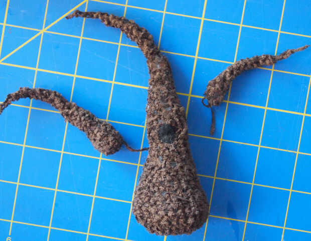 Tallo: con hilado verde cadena dos y puntadas en la parte superior de la calabaza.