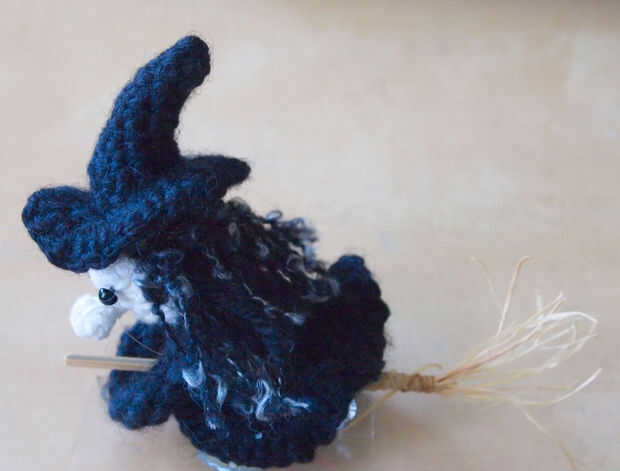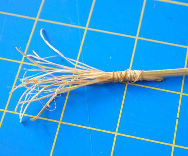 La escoba de las Brujas es hecha atando algunos rafia a parte de un pincho de bambú y luego lo asegurada en la parte inferior de la bruja y a través del lazo del brazo.