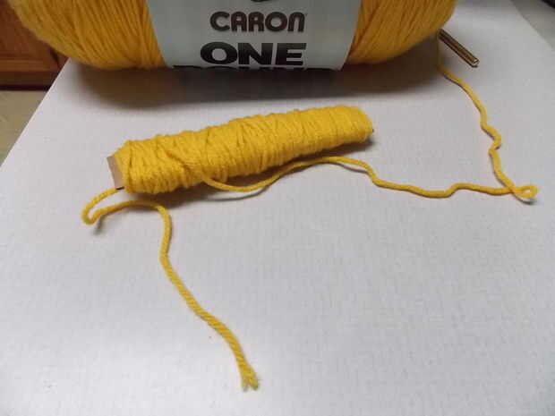 Envolver el trozo de cartulina con hilo. Más envuelve el grueso será tu poof.