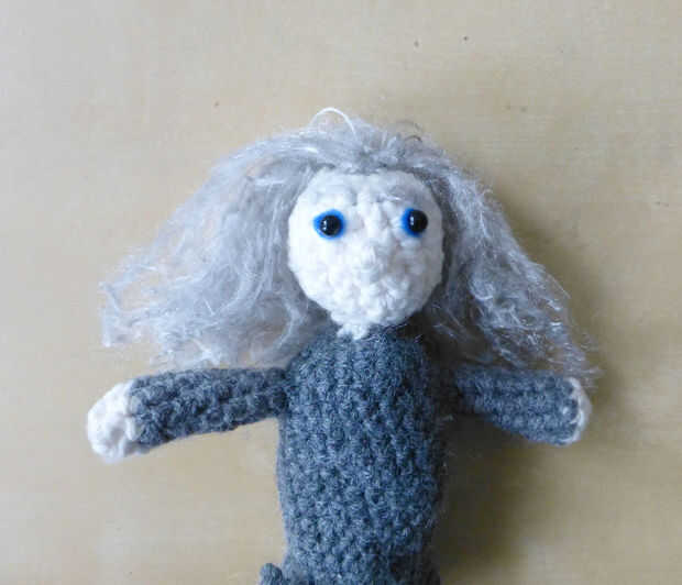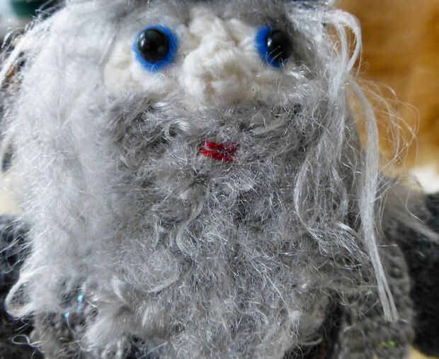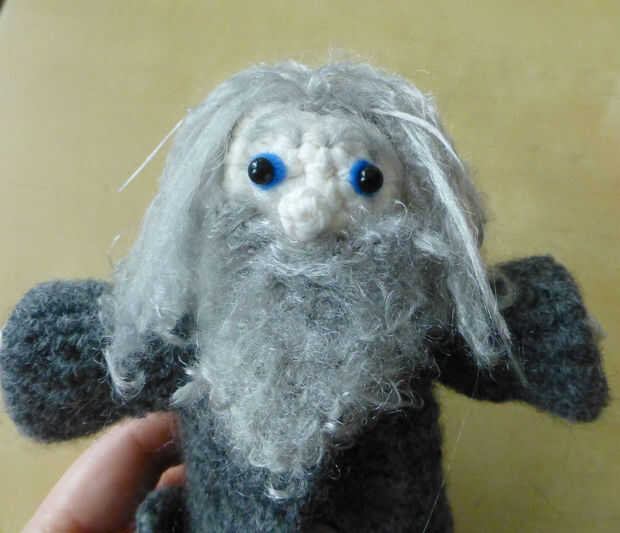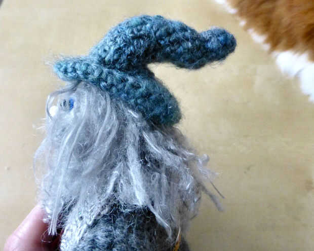 Fije la barba al thevface debajo de la nariz. Coloque el sombrero y una sonrisa en la barba de Gandalf de la puntada.