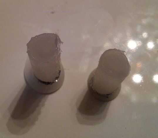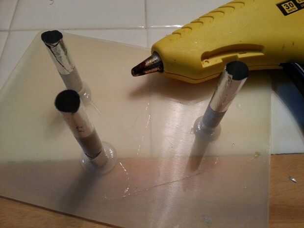 Hecho cada orificio poco primero por una paja de embalaje en papel de aluminio para crear la cáscara para rellenar con pegamento caliente. Una pajita de plástico duro-a sólo pasó a ser el tamaño perfecto para los agujeros. Yo elegiría algo más para hacer los tubos con la próxima vez. Papel era un dolor en el trasero a elegir fuera el pegamento caliente. Llené cada tubo con pegamento caliente entonces levantada un poco para algunos dejar exudar hacia fuera para crear una base de soporte. Una vez que haya enfriado pude escoger la hoja.