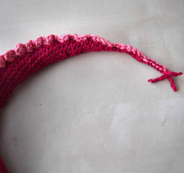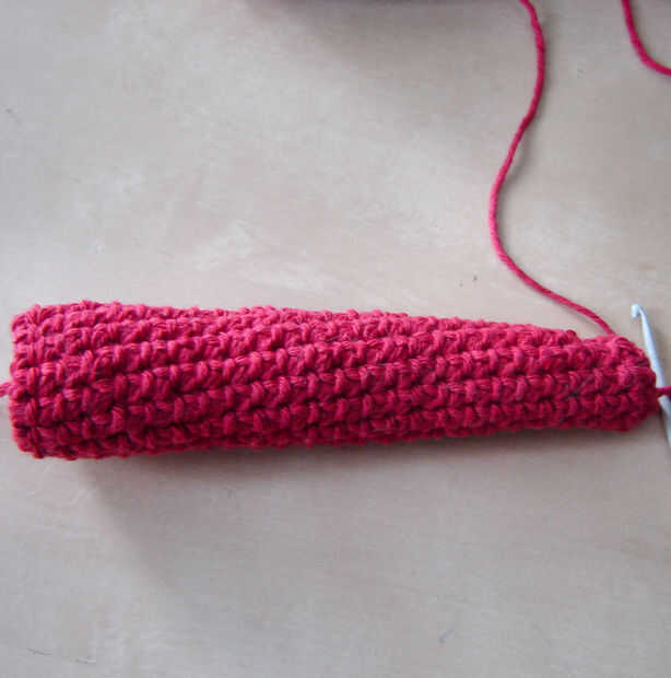 Con el hilo rojo primario del ganchillo la cola: