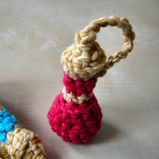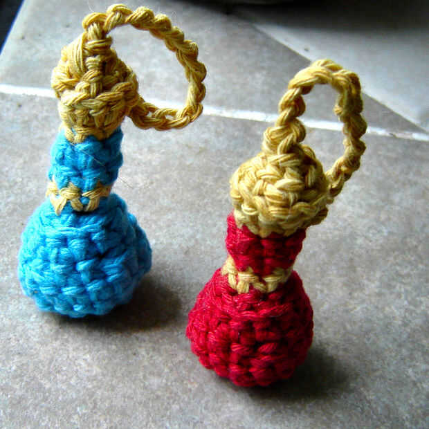 El patrón indica dónde utilizar el hilo rojo y amarillo para la poción de la salud. Sustituir el hilo azul por el rojo hacer la poción de mana.