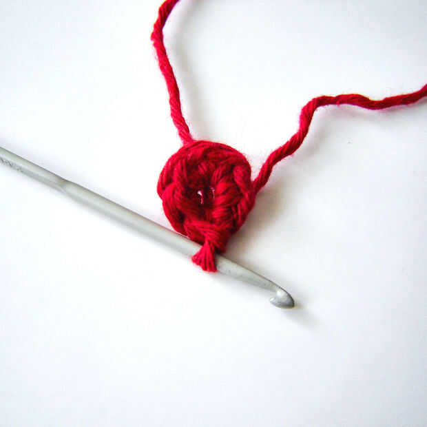NúmAleat 1: con hilado rojo; círculo mágico (6sts)