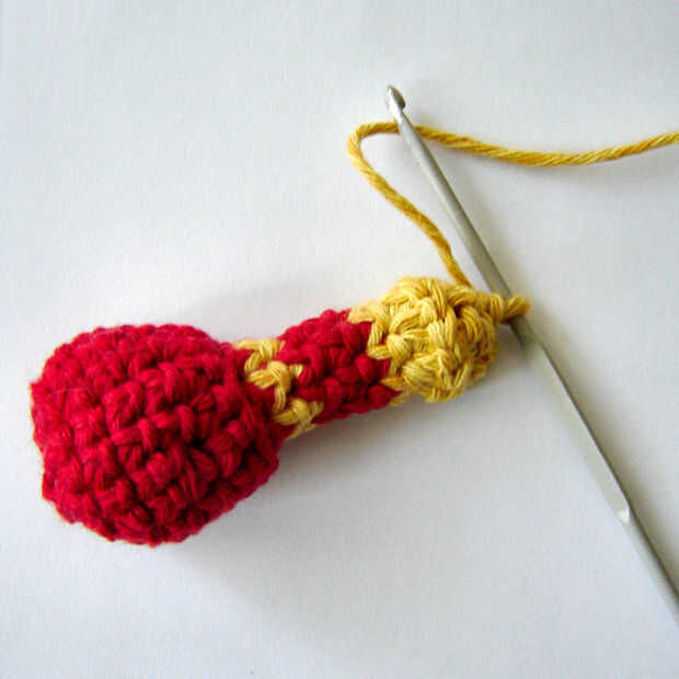 Rnd 12: En amarillo; 2SC en cada uno, sc sl st en primero (12sts)