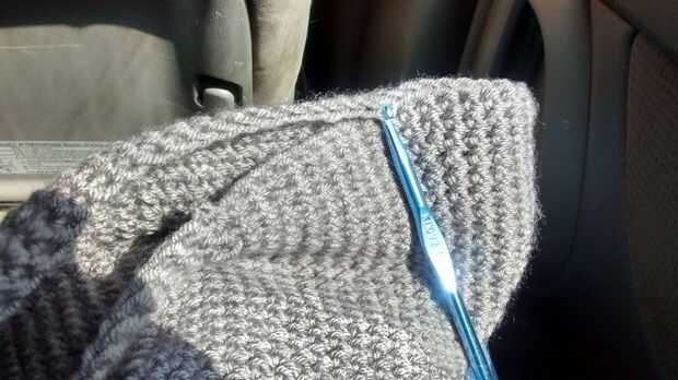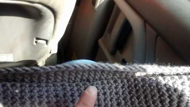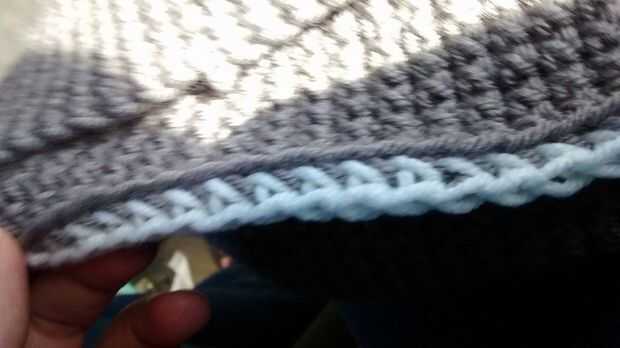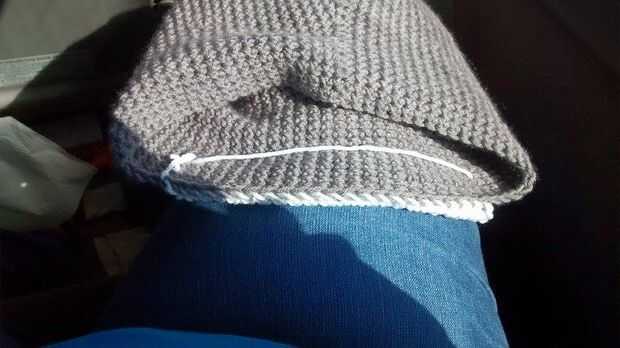 Empezar a coser solamente el lazo posterior del sombrero. El uno hacia el exterior. Va ser los bancos esto y ayudará a hacer más agradable el borde inferior.