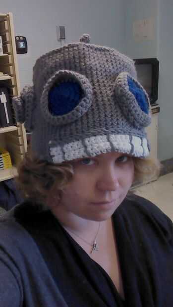 Para empezar la boca, doble usted sombrero por la mitad. Entonces un par pulgadas desde el extremo comenzará a crochet con ustedes hilados de color de boca. Usé blanco. Trate de contar los puntos, por lo que la misma cantidad en de ambos lados del sombrero. También quiere tratar de asegurarse de que la boca es un número par de puntos de sutura. Esto entra en juego cuando añades los dientes. No tiene que estar perfectamente centrada, pero no tienes la boca más medio entonces la gorra.