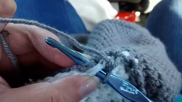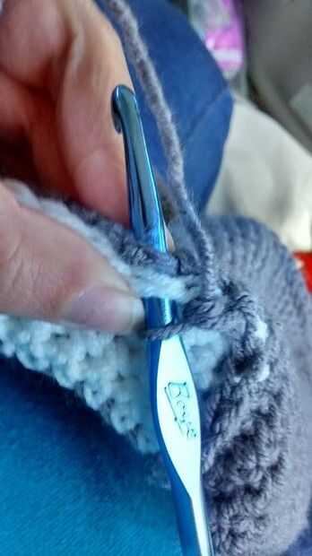 Ahora es el momento para colocar la boca. es necesario utilizar algún hilo gris a stitch.crochet alrededor del borde. Yo de ganchillo lo en como se puede ver en las fotos, pero fácilmente podría utilizar una aguja de hilo para coser en si es más fácil para usted.