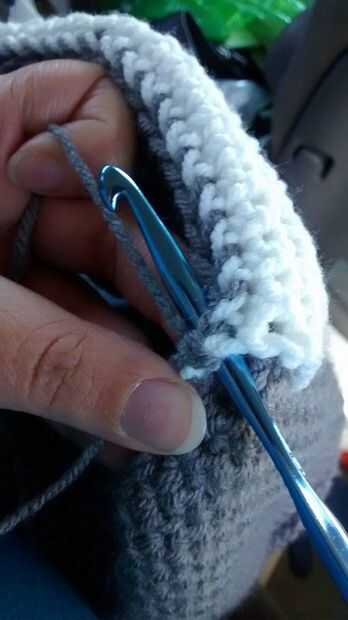 Vas a querer y a 4 filas de la puntada. Esto le dará una aleta blanca en el extremo del sombrero.