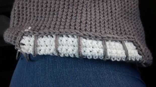 Apoderarse de una cadena de unos 4 puntos. Tire de ella aunque la parte superior, atarla alrededor de la base y respaldo por la parte superior. De esa manera tiene una doble cadena entre cada diente.
