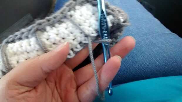 Ahora lleve ambas cuerdas de hilo por el punto medio en la parte superior de la boca.