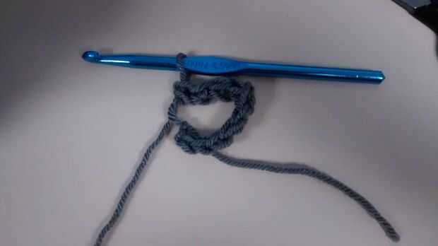 Empezar haciendo un nudo del resbalón flojo. Solo ganchillo puntada en el lazo. Empecé con 10 puntos. Una vez que haya terminado, tire el aguijón de hilo para cerrar el bucle y enlazar esa fila.