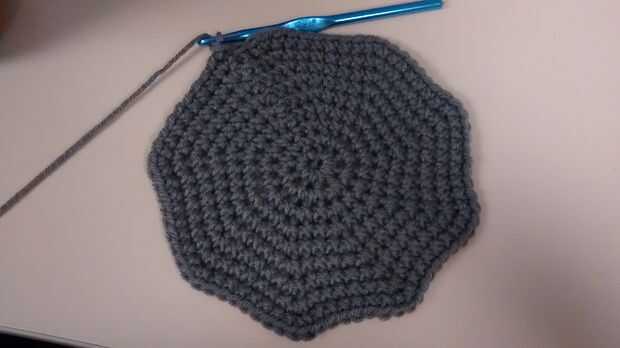 Apuesto por que ahora está ganando el patrón. Sólo aumente el número de solo puntadas por uno cada ronda que crochet. Terminarás con una forma decagon-ish. A mantener y aumentar hasta alcanzar el tamaño del diámetro (punto más grande a través del círculo) necesita. Para mí ha sido de 7 pulgadas. Una vez que alcanzó el tamaño que quería, hice una fila final, solo la puntada alrededor de todo el camino.