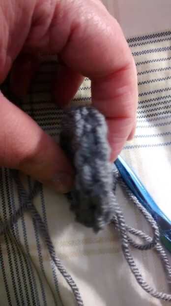 Ahora vas a coser poste frontal todo el camino alrededor. Luego coser dos filas más de eso. Debería verse como una pequeña taza de hilado.