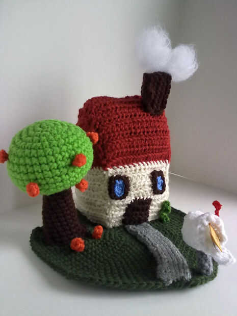 Uso naranja y hacer un círculo mágico con 7 espacios de ch dejan una cola de alrededor de 5 pulgadas tirón el uso de anillo cerrado la cola a la armadura en y hacia fuera a través de los lazos del exteriores Tire firmemente para formar un poco de bola luego coser al árbol y hierba.