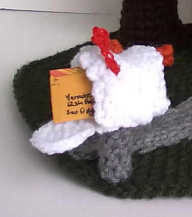 utilizando ganchillo más pequeño y el hilo DMC ch 7 slip st en 3 ch gancho fije apagado la armadura final y coser la bandera al lado de la caja.