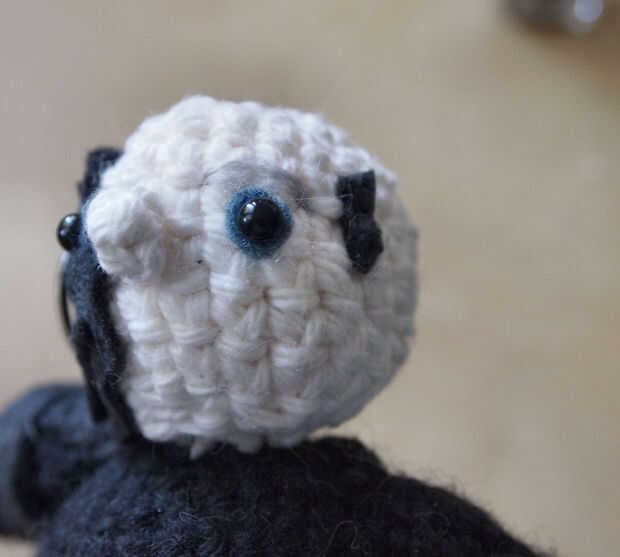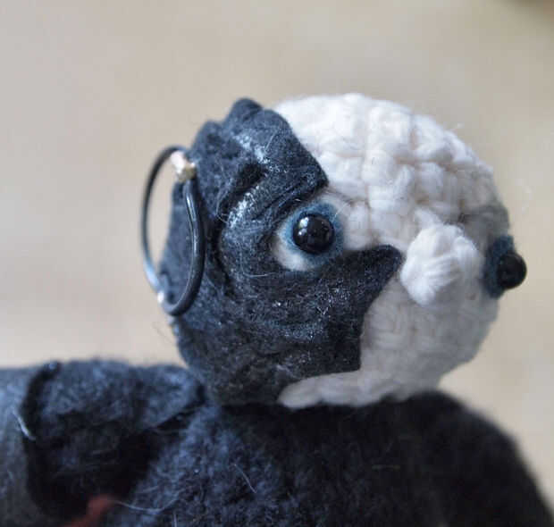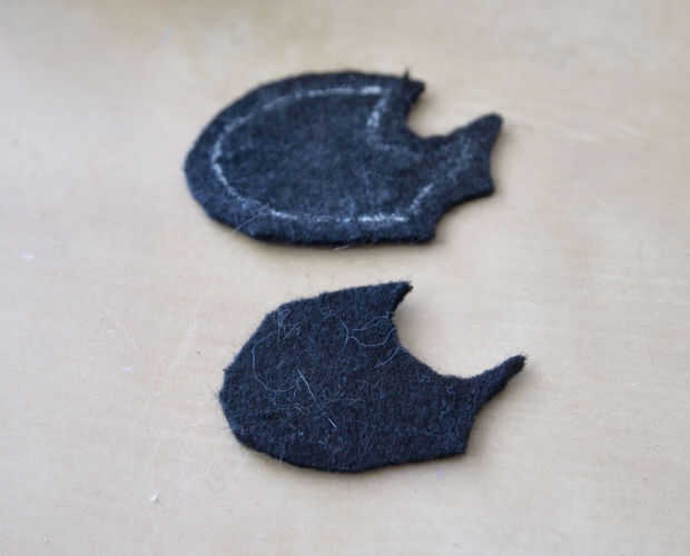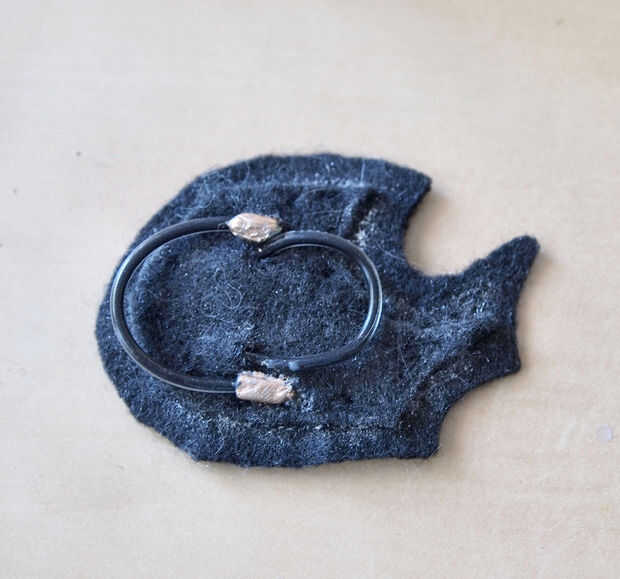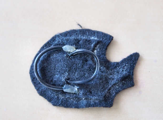 Para cabezal I dos piezas de fieltro en capas y añadido algunos plata pintura metalizada alrededor del borde.  Os adjunto dos bucles de cable negro pegando los extremos en el fieltro y pegar en su lugar.  Me pintó el oro pegamento caliente luego había cosido la pieza en el lado de la cabeza.  También cosí otra pequeña pieza de fieltro para el otro lado de la cabeza.