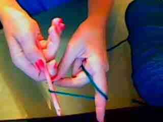 a continuación, pegue el ganchillo entre 1 y 2 como se muestra, bajo el hilo sobre la mano.